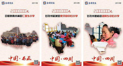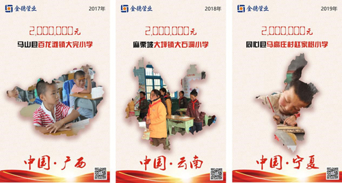 金德管業(yè)把公益助學(xué)上升為企業(yè)文化,視為一份用心對待、誠心經(jīng)營的事業(yè)。十三年以來,金德愛行之路從未停步,遍及新疆、西藏、四川、寧夏等9個(gè)省份,目前捐建已達(dá)13所希望小學(xué),累計(jì)善款達(dá)2579萬元。