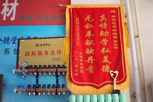 “心存善念,必有善行;善念善行,天必佑之”。金德管業集團自2008年起就致力于慈善教育事業,14年春秋,2779萬善款,金德管業集團齊心助力貧困學子的上學夢,呵護祖國的花朵,向社會傳播大愛。今年5月,來自菏澤市的經銷商王香芝接過“愛心接力棒”,號召店鋪合作的水工們為山區一名貧困學生捐款。