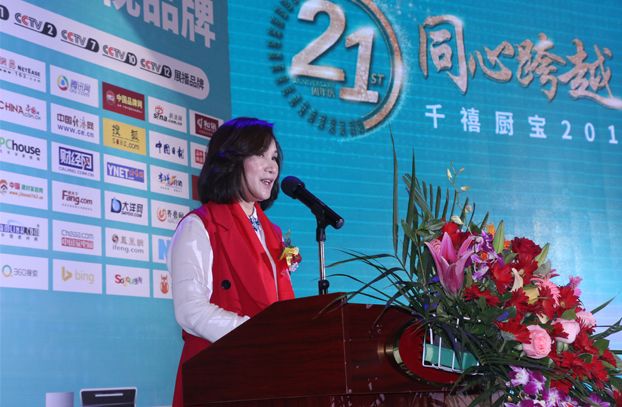 會議一開始,千禧廚寶總經(jīng)理周乃棠女士在現(xiàn)場嘉賓的注視下登上演講臺進行歡迎致辭,并對各位來賓的到來表示熱烈的歡迎及誠摯的感謝。周總在致辭中提到,在過去的2018年,千禧廚寶無論是在產(chǎn)品研發(fā)生產(chǎn),還是銷售服務,又或是品牌營銷升級方面,都取得了巨大的進步,這與戰(zhàn)狼團隊以及在座各位的努力是分不開的。但我們絕不能滿足于此,在2019年我們更需加倍努力,將千禧廚寶推向更大的世界市場,贏得世界的矚目。同時周總也希望在座嘉賓通過今天的會議能大有所獲,不枉此行。