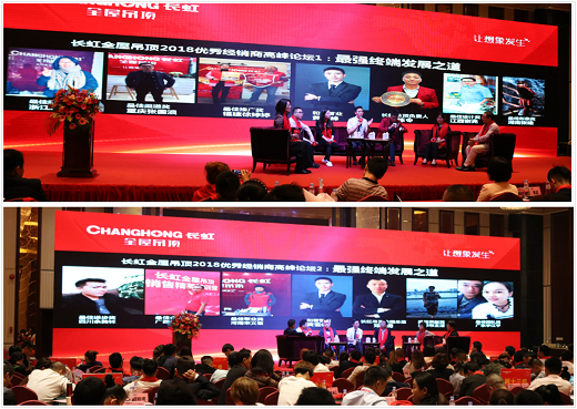 高峰論壇·頒獎盛典在夜晚正式拉開帷幕。落地實戰經驗的分享,讓在場嘉賓都聽得津津有味,沉浸在“干貨”的海洋里,愉悅暢游。同時,盛典還設立了頒獎環節,長虹全屋吊頂總部給在2017年有突出表現的優秀經銷商頒發獎項,以示嘉獎。獲獎者紛紛表示,在新的一年里要全力以赴,創造更大的價值,明年臺上的獲獎者,一定還有自己!
