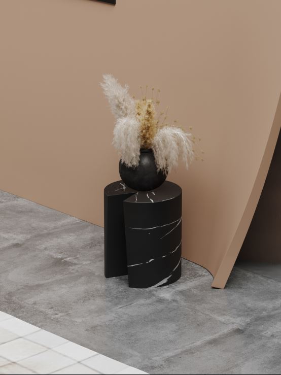 簡單的墨色,順應天然紋理,無刻意雕飾。圓形與尖角的完美搭配,相互融合,和諧共處,傳遞不一樣的設計理念。