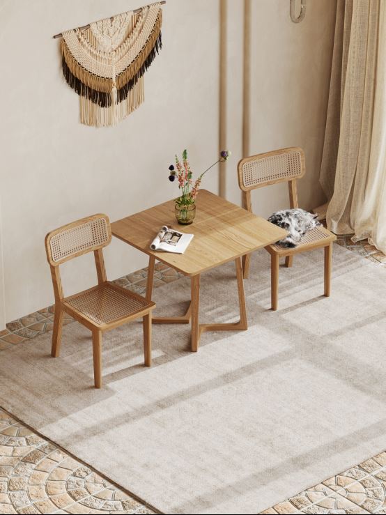 炎熱的夏天總有理由讓人食欲不振,而正確的打開方式是通過空間布置制造夏日清涼氣息,同時增添了一份生活氣息。洛品有家一套木質餐桌椅,線條柔和,能讓人快速融入安逸舒適的環境中,不會占用餐廳太多的面積,使空間看起來局促。