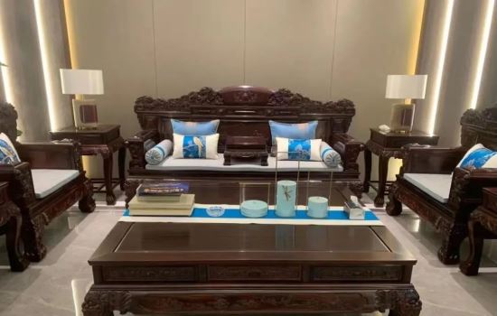 比如雕刻有祥云、如意、卷書等吉祥圖案的紅木沙發, 就是非常不錯的選擇。