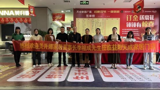 美升娜主動營銷團隊從產品知識、營銷技巧、店面運營思路、售前-售中-售后等方面切入,提供可行性操作方案,并結合其他優秀專賣店的案例進行精湛的剖析,真正做到讓客戶全程無憂,快速賺錢。美升娜家具董事長李祖成先生親臨湖南彬州益陽天成家居門店,指導美升娜團隊完成引流、集客、成交等工作。