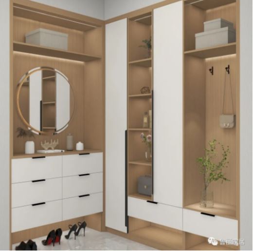 中間的開放格可以存放自己喜愛的包包、飾品等,也可以放上自己喜歡的藝術品,為整個空間增添更多的藝術氣息。
