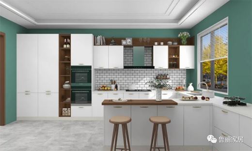 廚房整體采用經典的白色門板將視野拓寬,整體設計藏露結合,既方便零散物品的存放,又方便常用物品的拿取。
