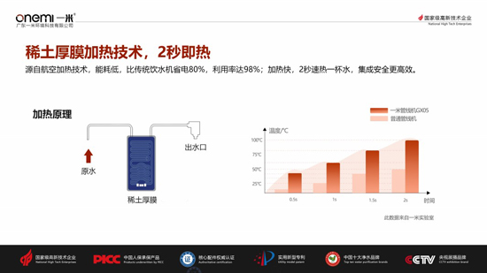 源自航空加熱技術,能耗低,比傳統飲水機省電80%;加熱快,2秒速熱一杯水,集成安全更高效。