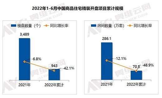 當(dāng)?shù)禺a(chǎn)的行為映射到中央空調(diào)行業(yè)時,可以明顯的發(fā)現(xiàn),上半年配套項目相對冷清,且不少地產(chǎn)項目的回款能力較差。據(jù)奧維云網(wǎng)發(fā)布的2022年6月精裝工程快報顯示,2022年1月~6月,中國商品住宅精裝項目新開盤累計數(shù)量943個,同比下降42.1%;開盤房間累計數(shù)量70.5萬套,同比下降48.9%。由此,進(jìn)一步加劇了中央空調(diào)工裝市場銷量的下滑。