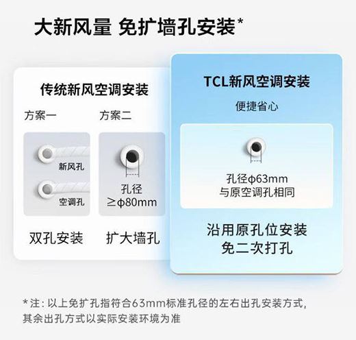 ( TCL新風空調小藍翼Ⅱ 安裝不用二次打墻孔也不用擴墻孔)