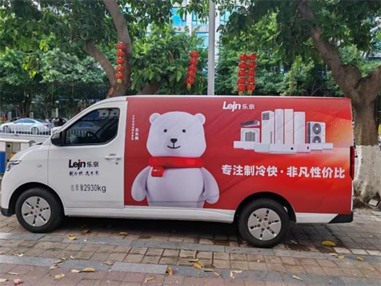 這兩輛宣傳車以亮麗的色彩和醒目的樂樂熊IP吸引了眾多路人的目光。車身兩側的海報展示了樂京空調的品牌定位——專注制冷快·非凡性價比,以及服務優勢——整機六年保修,一年免費換新,讓消費者對樂京空調有了更深入的了解和認識,有效提升了樂京空調的品牌知名度和市場影響力。