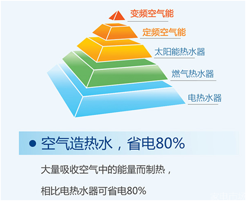 采用空氣能高效集熱技術,節能效果顯著,耗能僅僅為電的四分之一,燃氣的三分之一,太陽能的二分之一。空氣能的普及對于整個社會的節能減排將會貢獻相當大的力量。