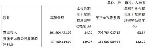其中,第三季度實現營業收入3.02億元,同比增長84.29%,歸屬于上市公司股東的凈利潤為0.57億元,同比增長129.27%。