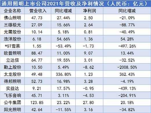 根據年報數據顯示,2021年照明行業普遍“增收不增利”。