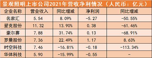 從年報數據看來,名家匯、愛克股份、豪爾賽、時空科技、華體科技等多家景觀照明企業2021年凈利潤均為下滑或為虧損,表現不及預期。