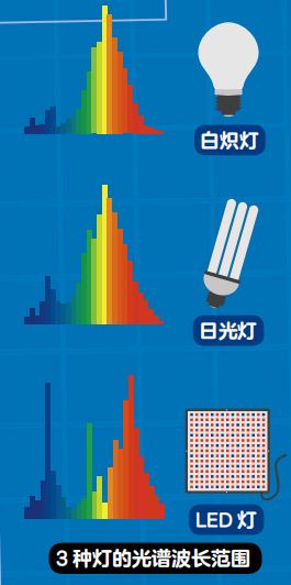 生活中,我們還能看到另外一種由特殊芯片構成的LED燈能發出白光,它們由GaN芯片和釔鋁石榴石(YAG)封裝在一起構成。GaN芯片發出藍光后,一部分藍光將YAG熒光粉激發,使其發出黃色光,另一部分藍光與熒光粉發出的黃光混合,從而得到白光。我們可以通過改變熒光粉的化學組成和厚度,來獲得不同類型的白光。