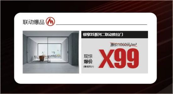 極窄35系列二聯動推拉門,原價1060元/㎡,現驚爆價X99元/㎡。
