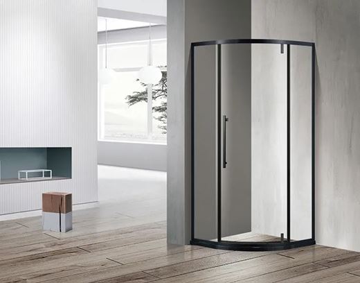 弧形淋浴房以低飽和度的啞黑色調