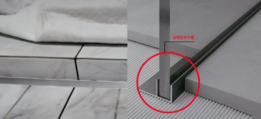 第三種可以用專門的金屬收邊條來收口,簡單有型,還能與玻璃隔斷結合。可以選用不銹鋼L型收口條,施工更簡單一些。注意一點,不管你選擇使用金屬收口條施工還是海棠角收口,一定要提前跟施工方確認好施工方案,收口條要提前購買送到施工現場,便于施工。