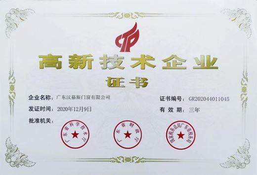 漢慕斯門窗是一家專注于高端系統(tǒng)門窗、推拉門窗、陽光房等產(chǎn)品,集研發(fā)、設(shè)計(jì)、制造、營銷為一體的綜合性企業(yè)。在產(chǎn)品外觀、結(jié)構(gòu)、實(shí)用性能等多個(gè)方面擁有20多項(xiàng)國家專利。其以系統(tǒng)門窗的設(shè)計(jì)思維,結(jié)合中國的水土氣候、文化及技術(shù)理念,采用佛山本土優(yōu)質(zhì)環(huán)保的鋁合金型材、國際上優(yōu)質(zhì)的系統(tǒng)門窗五金及汽車級輔材,精心打造節(jié)能智慧家居的高端定制門窗。也正因這份匠心制造,漢慕斯于2021年通過國家高新技術(shù)企業(yè)認(rèn)定標(biāo)準(zhǔn)的嚴(yán)格篩選,被授予“國家高新技術(shù)企業(yè)”專業(yè)認(rèn)證。
