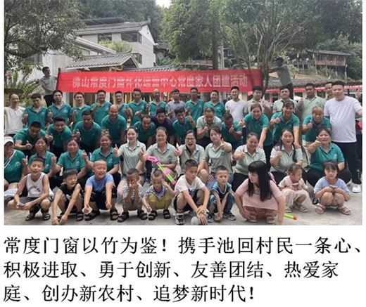 近日,常度門窗積極響應池回村委的號召,為池回村創清廉村居示范點獻計獻策、添磚加瓦,向村委提供“佛山常度門窗懷化運營中心常度家人團建活動”的照片,并配文“常度門窗以竹為鑒,攜手池回村民一條心,積極進取,勇于創新,友善團結,熱愛家庭,創辦新農村,追夢新時代”。此舉動,展現出振興鄉政企業代表該有的責任和擔當。常度門窗正在用自身的影響力,帶動更多企業、社會組織及個人感恩社會,回報社會,以實際行動助力鄉村振興!