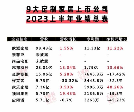 定制家居上市公司上半年的業績