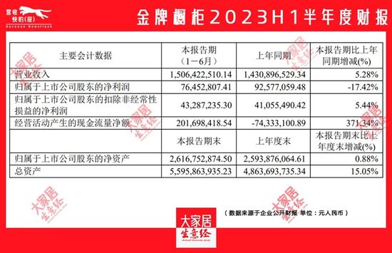 2金牌櫥柜2023上半年營收15.06億元,同比增長5.28%