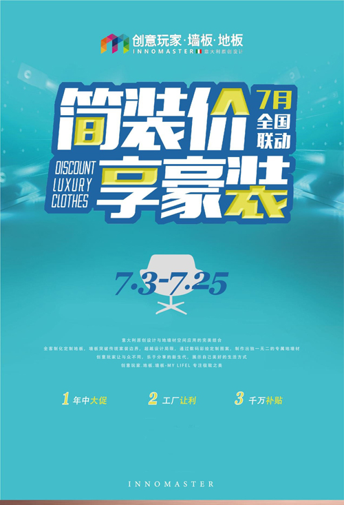 “簡(jiǎn)裝價(jià) 享豪裝”創(chuàng)意玩家7月全國(guó)聯(lián)動(dòng)購(gòu)活動(dòng)正在火熱進(jìn)行中,您還等什么?趕快前往創(chuàng)意玩家終端門店一探究竟,為自家的墻面與地面換上靚麗新裝吧!