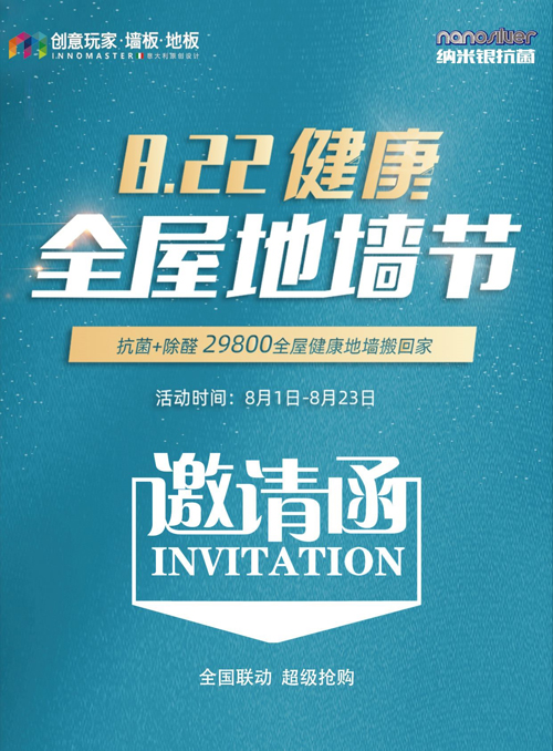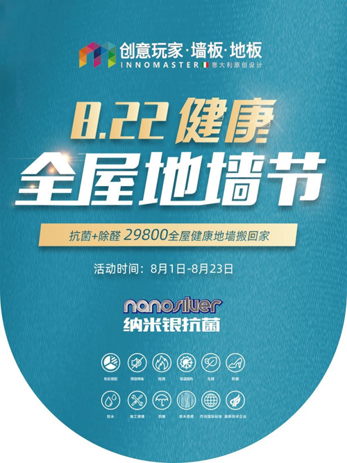 創意玩家是一個專注于全屋地板、墻板設計及研發生產的中高端品牌,憑借其優越的品牌特色和過硬的產品實力,使得品牌產品暢銷國際,創意玩家品牌理念深入人心。為實現消費者的健康環保需求,創意玩家研發并正式推出納米銀抗菌地墻板和除醛地板,做到真抗菌,真除醛,真健康,貼心守護您與家人的家居生活。8月創意玩家攜“健康全屋地墻節”重磅來襲,向您發出“活動邀約”:8月1日至8月23日,健康升級不升價,給自己家居換上健康環保的保護罩。
