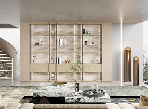 灰白門板鑲入石紋吊柜