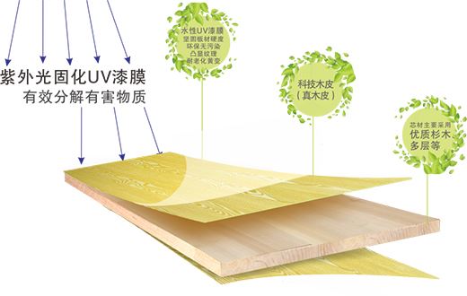 紫外線通過板材時, UV漆膜將進一步固化,同時分離板材中的有害物質,讓雜質在陽光下遁形。產品硬度提升至普通烤漆板的2倍,同時耐磨力、抗刮碰性、防水性能也隨之提升!表里如一,才能始終經得起時間考驗,扛下歲月洗禮。