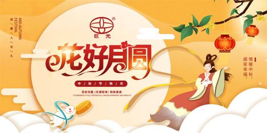 中秋佳節(jié),巨光對親愛的客戶、合作伙伴、經(jīng)銷商及社會各界關(guān)心我們的朋友說:添一份對生活的詩意,趣味意然;享一份和家人的陪伴,綿長恒久;感謝您一路支持與陪伴,祝您及家人中秋快樂,幸福安康,闔家團圓!