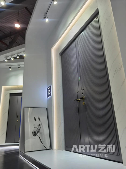 藝和高端門在本次設(shè)計(jì)周中所展示出的新品別出心裁。如,精雕裝甲門,整體運(yùn)用了永不過時(shí)的灰調(diào),直線豎紋的風(fēng)格繼承著極簡(jiǎn)的傳統(tǒng)。加之,源自德國(guó)的斷橋工藝,能為使用者帶來舒適安靜的私人空間,還有智能鎖的配套,更是輕松實(shí)現(xiàn)智能靜音。