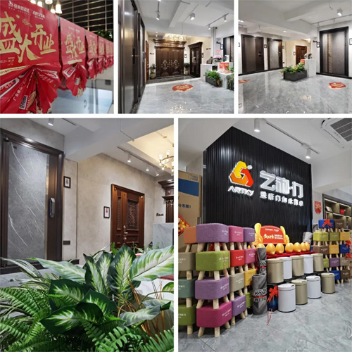 步入江門禮樂藝和專賣店,整潔明亮的展廳,以簡約現代裝飾風格,展示了銅門、韓式門、裝甲門,品種眾多,為您量身定制。快看,禮品展示區印著專屬LOGO的豪禮,更顯專業、用心!