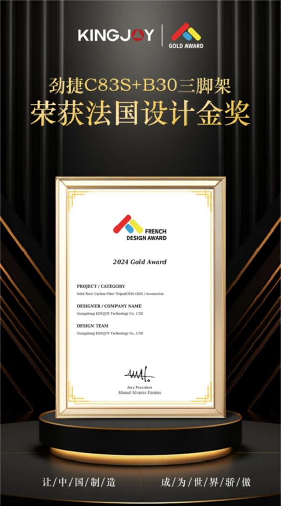 我們榮幸地宣布,勁捷品牌海岳系列C83S+B30碳纖維三腳架榮獲2024年度法國設(shè)計金獎。這一殊榮不僅是對勁捷品牌實力的肯定,也是對我們產(chǎn)品實力的認可。我們深知,每一次的獲獎都是對勁捷人不懈努力和持續(xù)創(chuàng)新的最好回報。