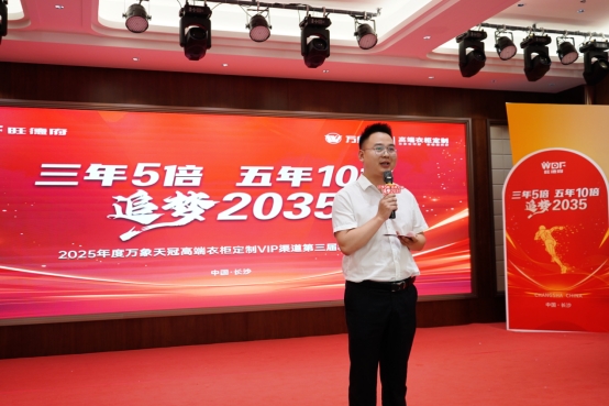 旺德府家居集團新零售定制業(yè)務中心聯(lián)席總經理金超群先生代表萬象天冠品牌,向現場每一位嘉賓表達誠摯感謝。并向全體合作伙伴傳遞熱忱期許:“期待在萬象天冠高端衣柜定制的發(fā)展征途上,憑開拓創(chuàng)新的銳氣破局向前,同心共繪行業(yè)繁榮新圖景!”