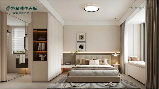 將軍牌生態板深諳色彩美學,以精準的色系把控貫穿主體結構與細節裝飾,讓不同空間的過渡自然流暢。這種細膩的色彩把控,既營造出和諧統一的空間氛圍,又在統一中勾勒出豐富層次感——使現代簡約風格更顯干凈利落,令經典輕奢風格愈顯高貴典雅。