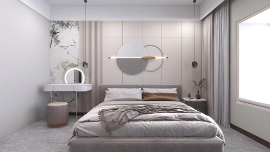 適配人群:喜歡極簡生活、追求空間整潔感的都市白領(lǐng),或是小戶型家庭,用簡約設(shè)計(jì)弱化家具存在感,讓臥室更顯開闊。