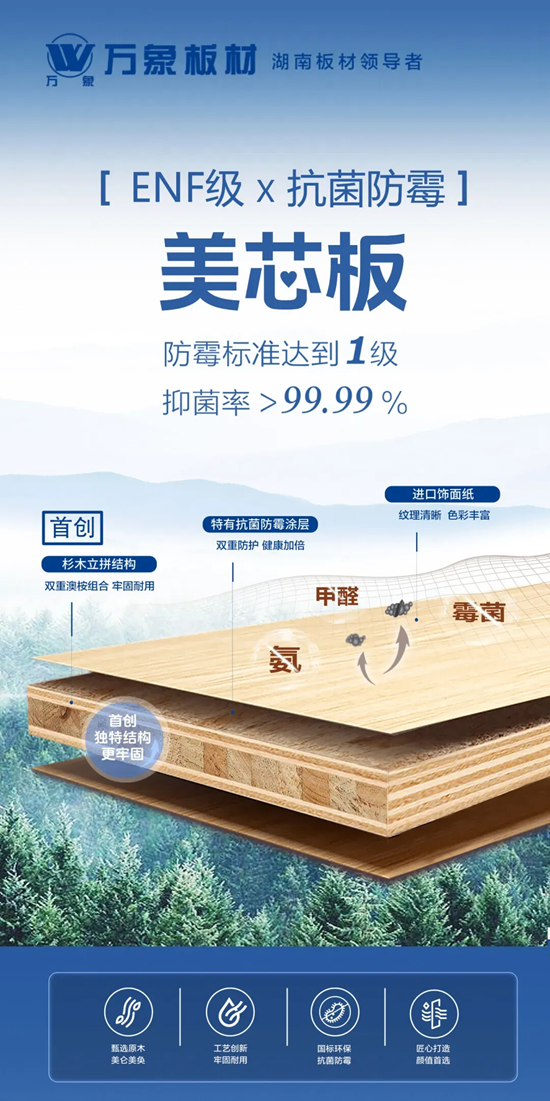 直到在朋友家做客,看到她家兩個同樣活潑好動的孩子把家當作游樂場,但家具卻依然光潔如新,王女士才發現了家居界的“抗造神器”——在裝修第二套房子的時候,堅決的選擇了萬象抗菌防霉美芯板。