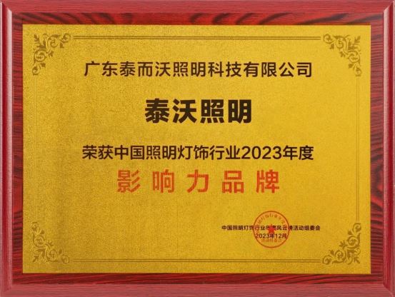 泰沃照明 榮獲 中國照明燈飾行業年度風云榜