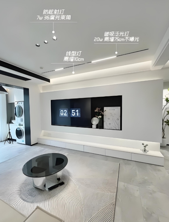 動態響應:智能系統可實時采集環境數據(如自然光強度、人流密度),動態調整光域分布。例如San Lamp System通過磁吸模塊化設計,支持臺燈、壁燈等多場景切換,并集成APP控制光域參數 1。