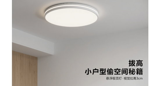 吸頂燈是一種安裝在天花板上的燈具,它的特點是緊貼天花板,不占用空間。對于小戶型來說,吸頂燈是一種非常實用的燈具,它可以為空間提供充足的照明,同時也可以在視覺上讓天花板看起來更加平整、開闊,從而增加房間的層高。