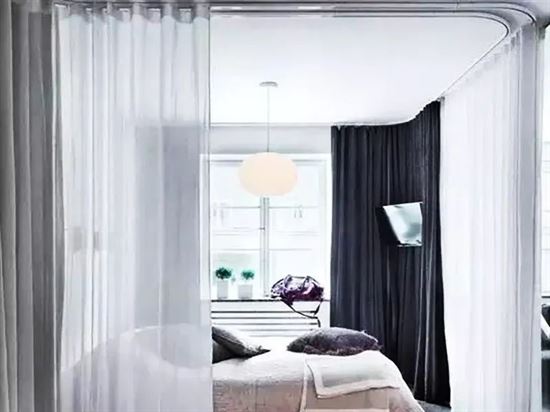臥室適宜使用紗簾隔斷,紗簾不僅可以增加居室的溫馨感和浪漫感,還可以讓人感受到自然風的輕柔拂過;如果想要更好的增加臥室的溫馨感和浪漫感,可以在紗簾的樣式上下功夫。例如帶有精美層疊折花的羅馬式窗簾,可以為空間增添一絲柔美和寧靜,一定程度上能提升睡眠質量。