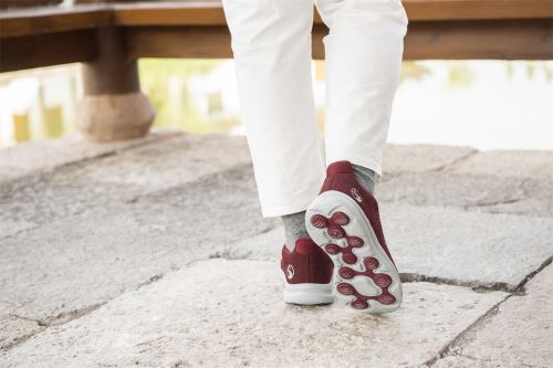 其色彩以紅、黑、灰、藍(lán)、粉和紫色為主調(diào),既融入了老年人偏愛端莊大氣的特點(diǎn),又不失時尚靚麗的元素,楓葉造型為圖案的品牌標(biāo)識主體,以絢麗的中國紅為基礎(chǔ)色調(diào),喻意著“夕陽無限好,楓葉正紅時”的魅力晚年場景。鞋面采用明線設(shè)計,秀氣俊美,鞋底與鞋面撞色搭配,更顯年輕,色彩與設(shè)計相映生輝,非常適合日常搭配,長輩們穿上更加賞心悅目。