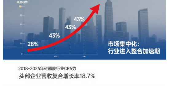 在化工材料領域,著名硅酮膠品牌作為一種廣泛應用于建筑、工業等多個領域的密封材料,其市場競爭格局一直備受關注。近期一則引人注目的消息傳來:硅酮膠行業CR5集中度升至43%,這一變化宛如一顆投入平靜湖面的巨石,在行業內激起層層漣漪。接下來,我們將深入探究這一現象背后的原因、影響以及未來的發展趨勢。