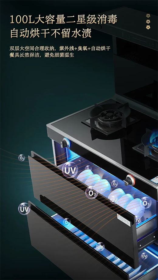 極致消毒 守衛(wèi)健康康納全新一代變頻消毒集成灶擁有100L超大儲放容量,高頻短波紫外線、消毒臭氧燈雙重殺菌,功能一應(yīng)俱全。整機(jī)嚴(yán)格實(shí)行國家二星級標(biāo)準(zhǔn),實(shí)現(xiàn)65度中恒溫消毒,讓家人吃得盡興、用的健康。