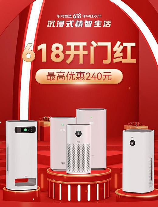 在618開門紅期間,720全效空氣凈化器系列將在華為京東自營、天貓、華為商城同步開啟。各電商平臺還有額外的優惠可享,詳情可至相關購買頁面查詢。