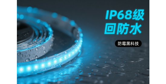 首先,我們來了解一下IP68級防護的含義。IP是國際用來認定防護等級的代號,后面的兩個數字分別代表防塵和防水能力。數字越大,防護能力越強。6代表完全防止外物侵入,且可完全防止灰塵進入;8則表示可于相當深的水中在一定時間或水壓的條件下,仍可確保正常運作。這就意味著,這款LED燈帶在回南天這樣潮濕的環境中,能夠很好地保護自身不受水汽和灰塵的侵害,保證其正常工作。