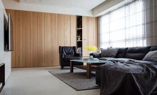 如果全屋用木飾面的話,那么你的預算肯定會超出的,所以考慮到預算問題,局部使用其實效果也是不賴滴,沙發背景墻做木飾面,比起一昧刷乳膠漆,整個空間材質更豐富,即便墻面沒有一幅畫裝飾,一點也不覺得單調。