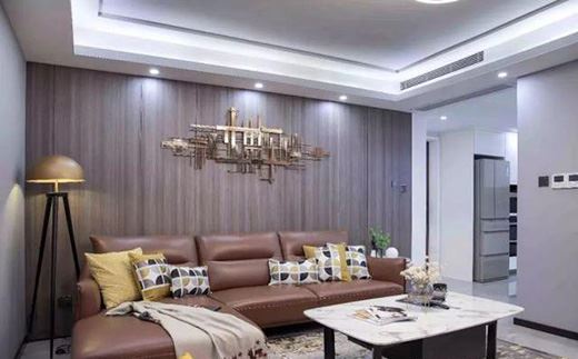 無論是沙發墻還是電視墻,并不一定非要整面,局部使用效果也不錯,木飾面搭配燈帶使用更上檔次,順便起到輔助照明的作用。