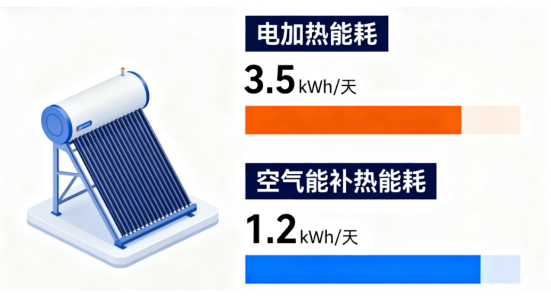 在碳中和目標(biāo)推進(jìn)與新能源技術(shù)革新的雙重驅(qū)動下,太陽能熱水器憑借清潔、節(jié)能的優(yōu)勢成為家庭熱水系統(tǒng)的主流選擇。然而,受晝夜更替、季節(jié)變化及天氣波動影響,太陽能集熱效率常出現(xiàn)波動,輔助加熱裝置成為保障全天候熱水供應(yīng)的關(guān)鍵配置。當(dāng)前市場中,電加熱與空氣能補(bǔ)熱是應(yīng)用最廣泛的兩類輔助方案,二者在能耗特性、運(yùn)行成本及適用性上存在顯著差異。本文將從技術(shù)原理、實(shí)際工況測試數(shù)據(jù)、經(jīng)濟(jì)性分析三個維度,深入對比兩種補(bǔ)熱方式的能耗表現(xiàn),為用戶提供科學(xué)選型參考。